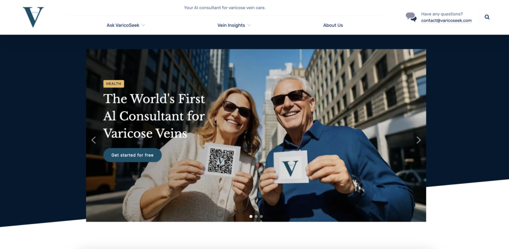 VaricoSeek is a specialized AI consultant for varicose veins. Its knowledge focuses on venous hemodynamics, lower limb vein conditions, and CHIVA treatment.