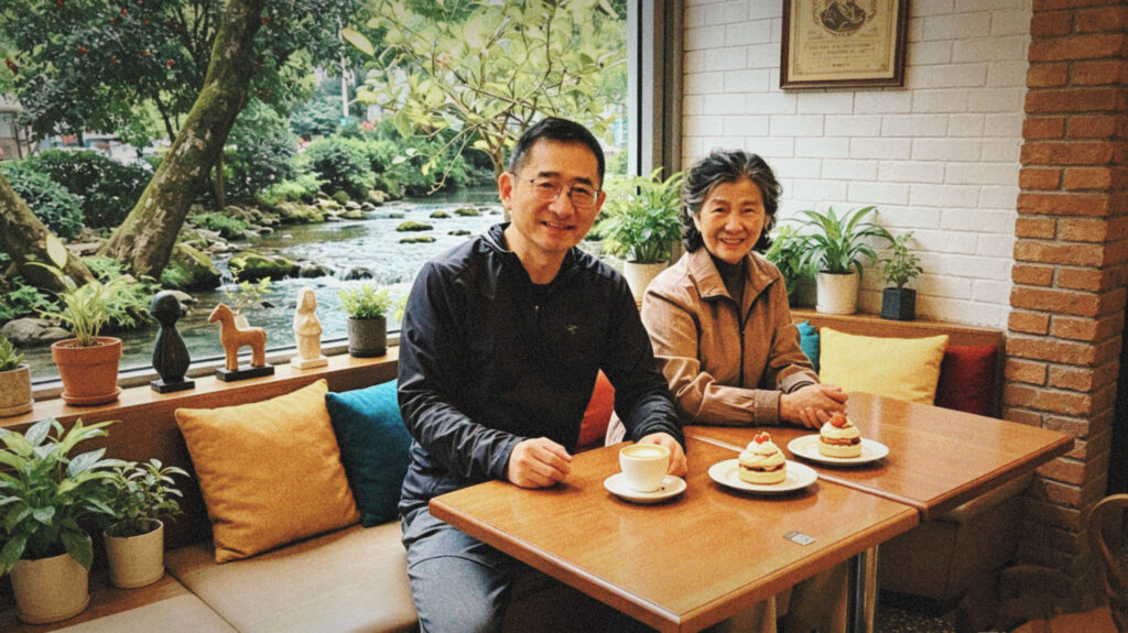 Dr. Qiang Zhang spending time with his 87-year-old mother — a quiet moment of care, gratitude, and lifelong companionship.